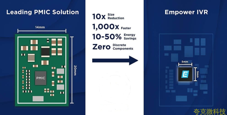 集成稳压器(IVR)是电源管理芯片中的新类别,声称已缓解了长达数年的功率密度和能效之间的平衡问题。 由三位模拟资深人士于2014年共同创立的 Empower半导体 公司创建了5×5毫米的占位面积,可消除或集成分立元件。
