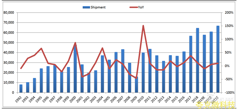 Semi 预计,2019-2021 年依次是 576 亿美元、608 亿美元、668 亿美元,随着 5G 技术推动半导体设备行业规模将创历史新高。