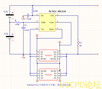 PL7022,两节锂电池保护电路。