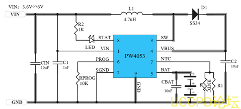 3,单节锂电池充电电路:
