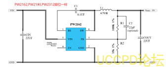 PW2162,两节锂电池降压稳压到