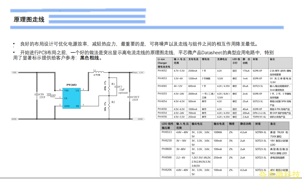 至5.5V输入电压范围使PW2053非常适合单锂离子电池供电的应用。