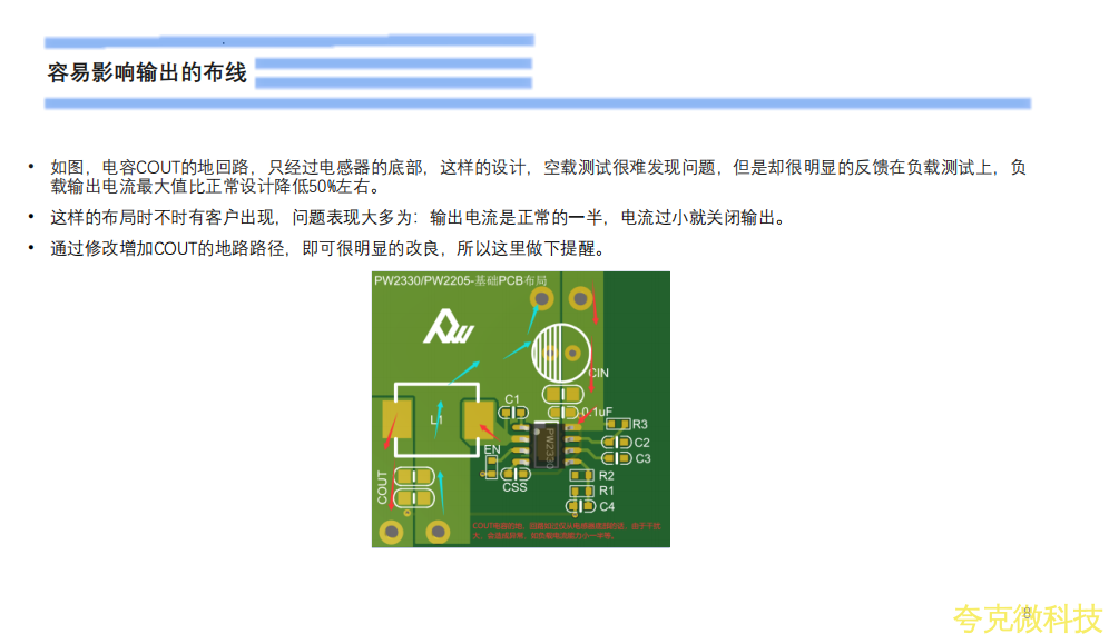CIN必须要靠近PW2330的VIN引脚PIN8,不建议过孔背面放置。COUT在条件限制时,可过孔背面放置。