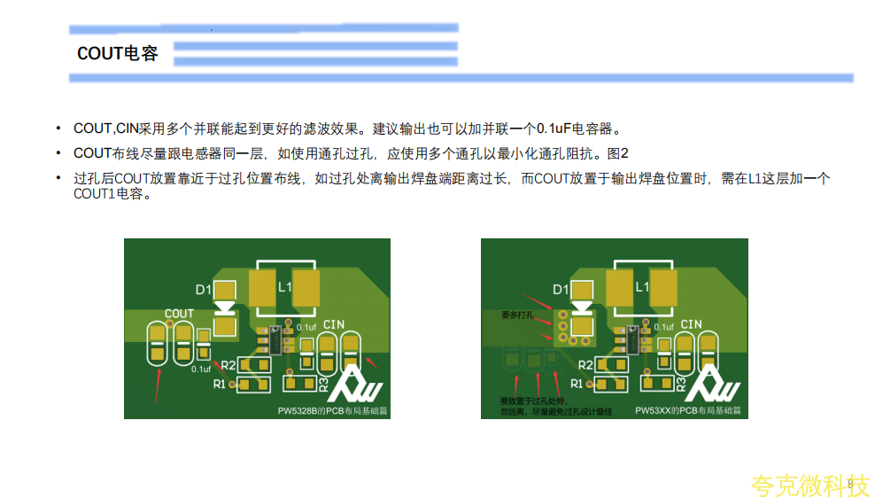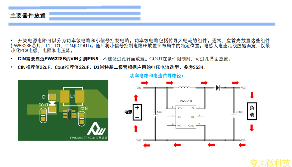 CIN需要靠近PW5328B的VIN引脚PIN5,不建议过孔背面放置。COUT在条件限制时,可过孔背面放置。