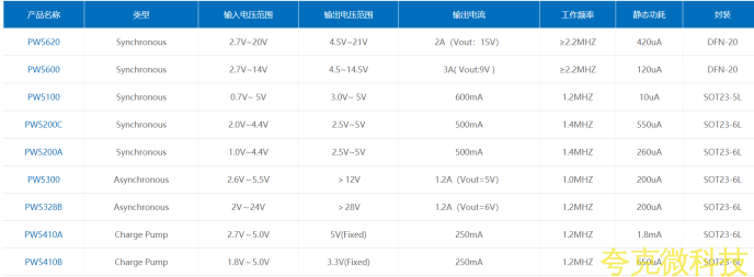 PW5100支持输入电压范围0.7V-5V之间,输入电压范围宽。同时低压升降压芯片可以看PW5410B和PW2224,如2.5V-4.2V,升降压输出3.3V等。