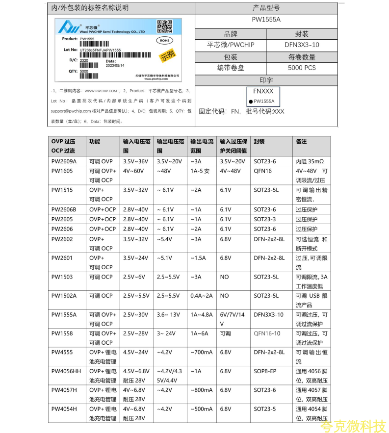 :平芯微PW1555A中文规格书