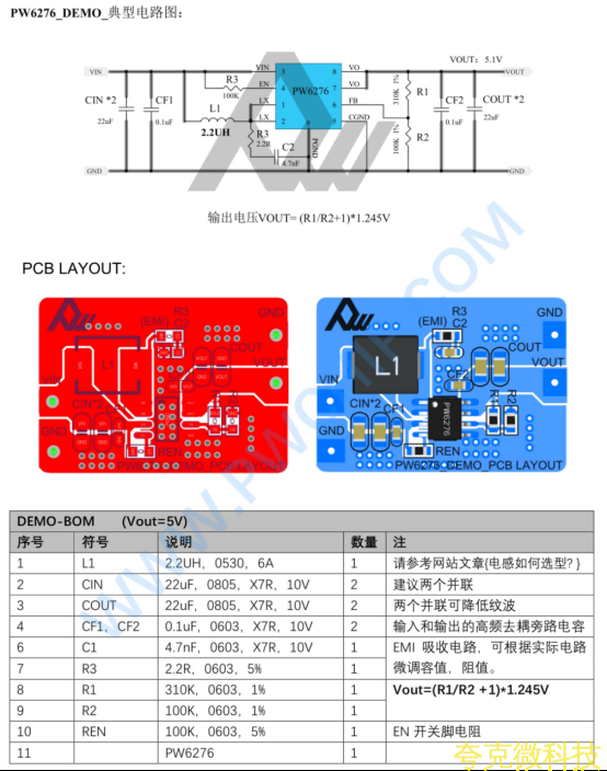 热管理 : PW6276的EPAD需良好接地散热,大电流下注意温升。