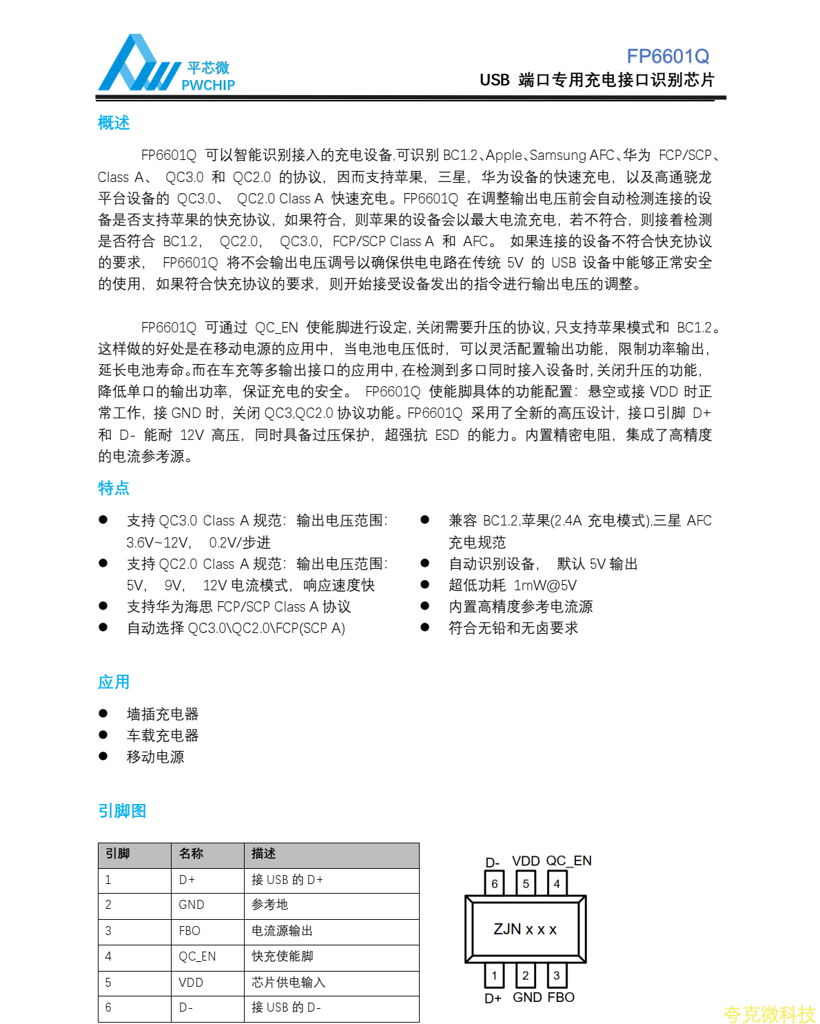 :平芯微FP6601Q中文规格书