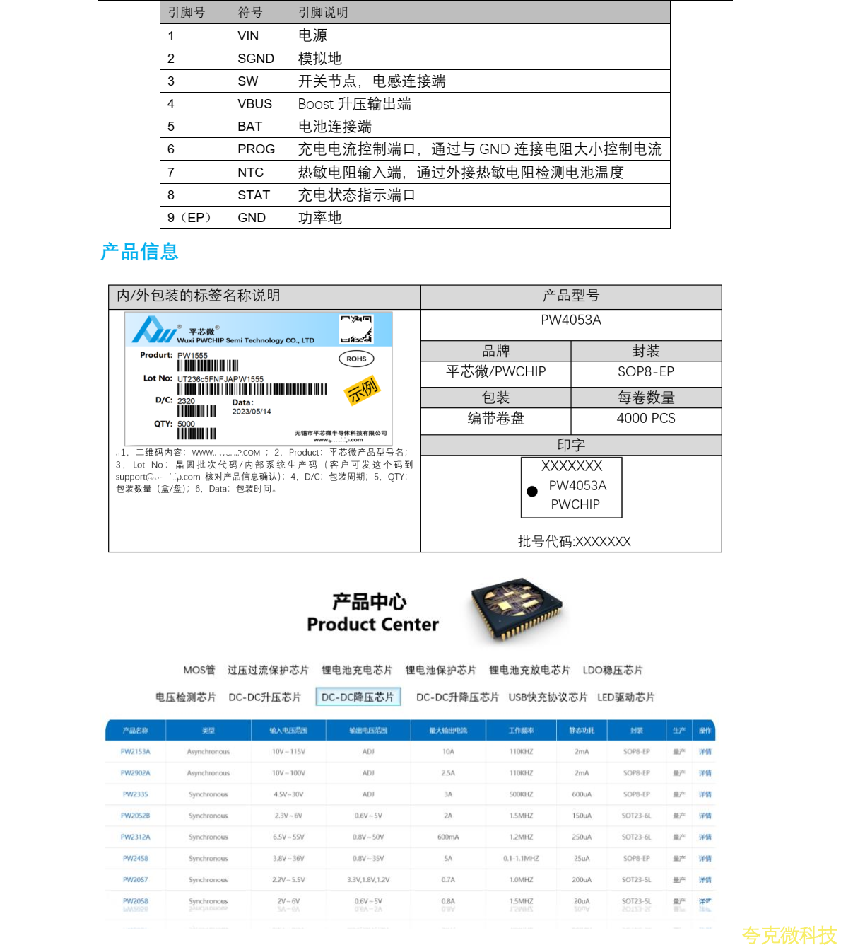 平芯微PW4053A中文规格书