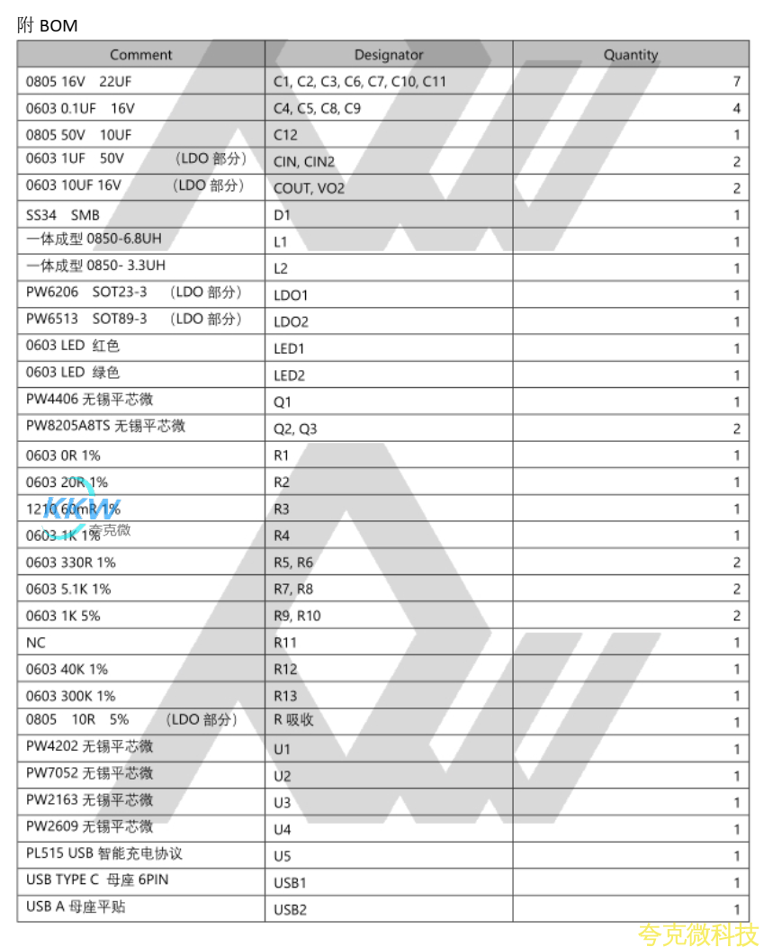 4、输入过压保护阈值电路芯片: PW2609, 可以保护 USB 输入端免受过压的损坏。它具有