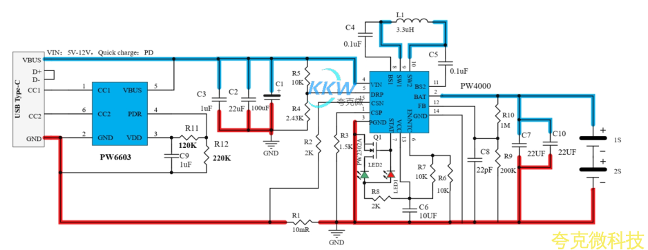 1, 锂电池充电电路: PW4000