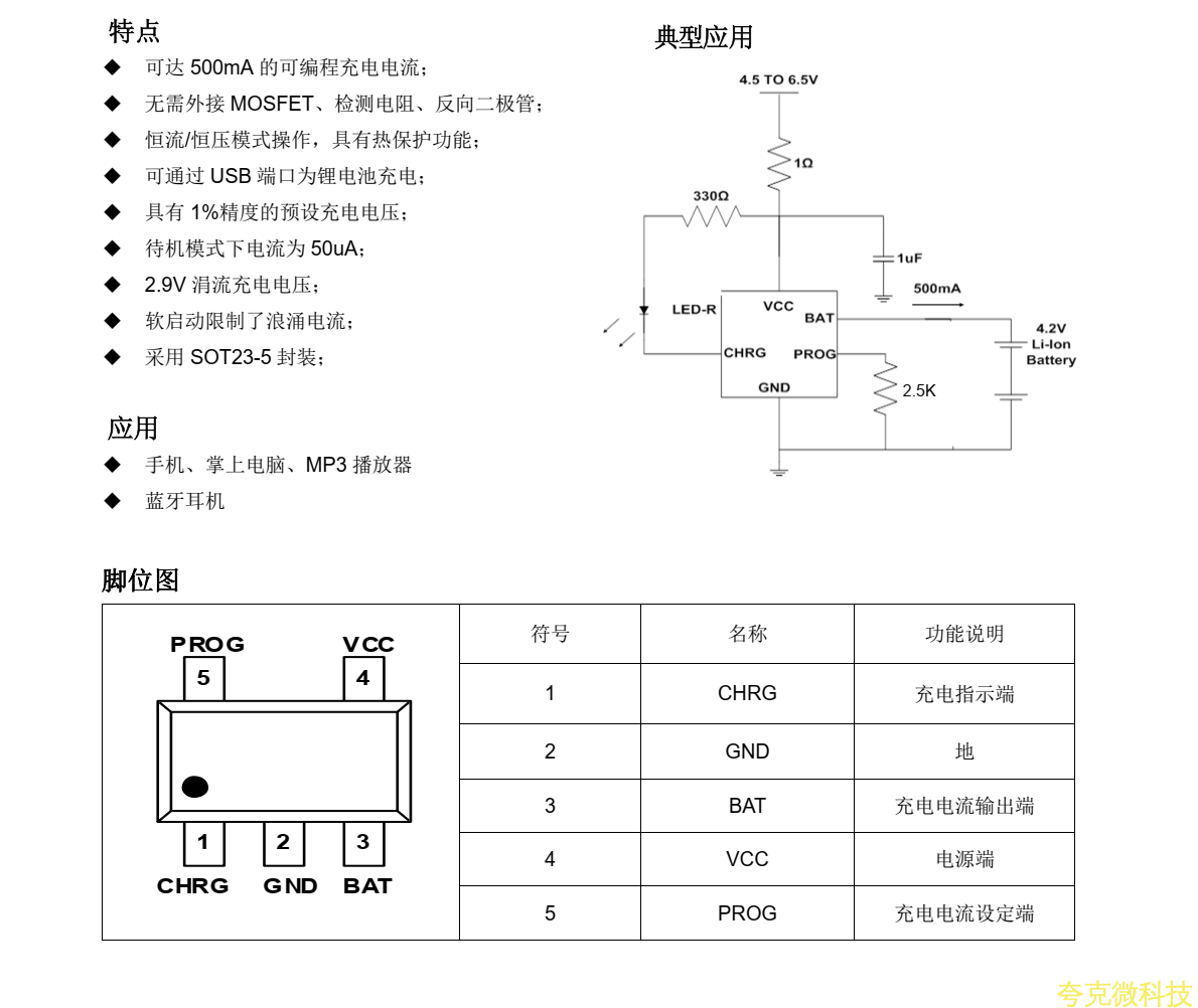 充电过程。当输入电压移开之后, FS4054 自动进入低电流模式,从电池吸取少于 2uA 的电流。当 FS4054 进