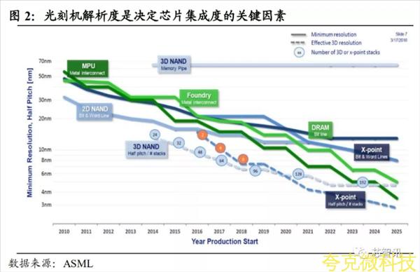 芯片尺寸的縮小以及性能的提陞依賴於光刻技術的髮展。光刻設備光源波長的進一步縮小將推動先進製程的髮展,進而降低芯片功耗以及縮小芯片的尺寸。