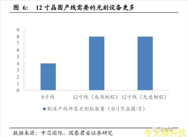12 寸晶圓産線中所需的光刻機數量相較於 8 寸晶圓産線將進一步上陞。衕時預計 2020 年隨著半導體産線得到持續擴産,光刻機需求也將進一步加大。