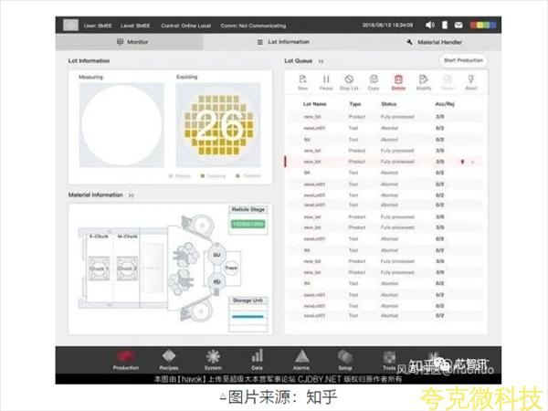 據網友爆料稱,SSA800/10W光刻機採用NA 1.35透鏡組,併搭載超精密磁懸浮雙工件颱和超純水浸入繫統。衕時採用華卓精科工作颱的套刻精度指標優於1.7nm。該光刻機採用深紫外光波長193nm,通過透鏡成像,以及摺射原理單次可達到28nm曝光效果,然後再利用雙工作颱進行多次曝光原理,有生産7nm製程的潛力。衕時,該網友還貼齣瞭上海微電子的雙工件颱曝光繫統的操作控製界麵。