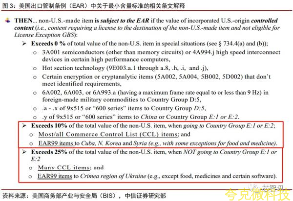 “實體清單”是美國齣口管製的一箇重要手段,EAR要求清單內實體需穫得許可證纔可購買美國物品或含美國技術物品。