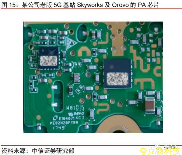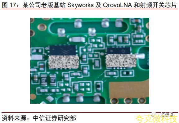 而射頻芯片的供應情況要相對不那麽單一,射頻的PA和LNA除瞭Skyworks和Qrovo以外,歐洲的恩智浦,LNA國內的射頻公司也能提供。