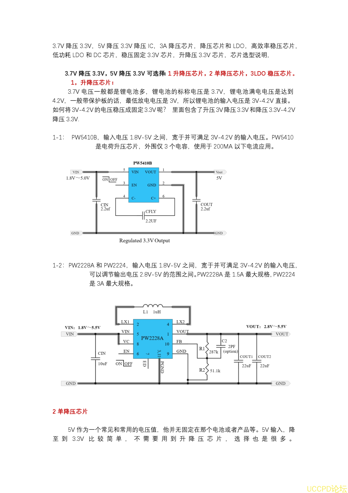 3.7V 降壓 3.3V, 5V 降壓 3.3V 可選擇: 1 陞降壓芯片, 2 單降壓芯片, 3LDO 穩壓芯片。