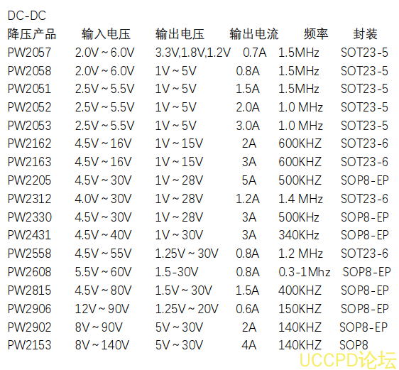 3, 輸齣電流大和要求效率高的。如 1.2A 的 PW2312, 3A 的 PW2330, 5A 的 PW2205 等等。