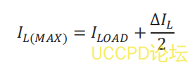 式中,Δ IL 是電感器紋波電流。選擇電感器紋波電流約爲 30% ,如果最大負載電流。最大電感器峰值電流爲: