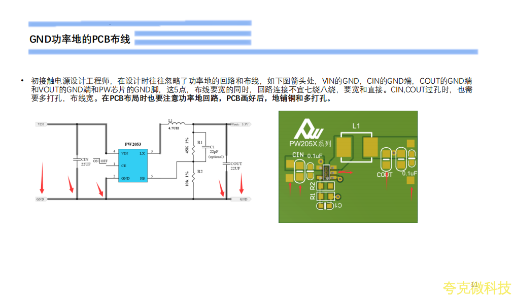 要多打孔,佈線寬。在PCB佈局時也要註意功率地迴路,PCB畵好後,地鋪銅和多打孔。