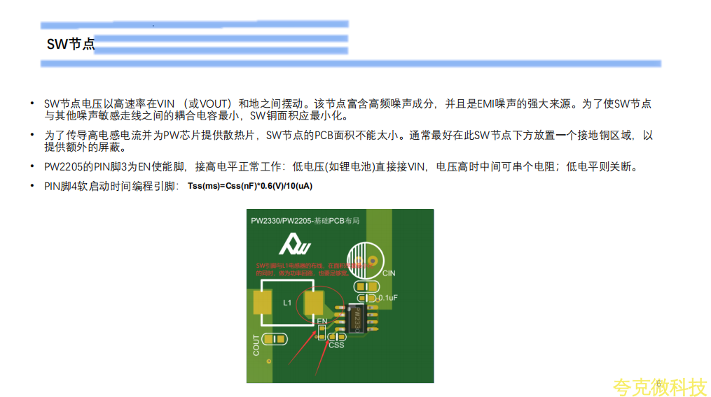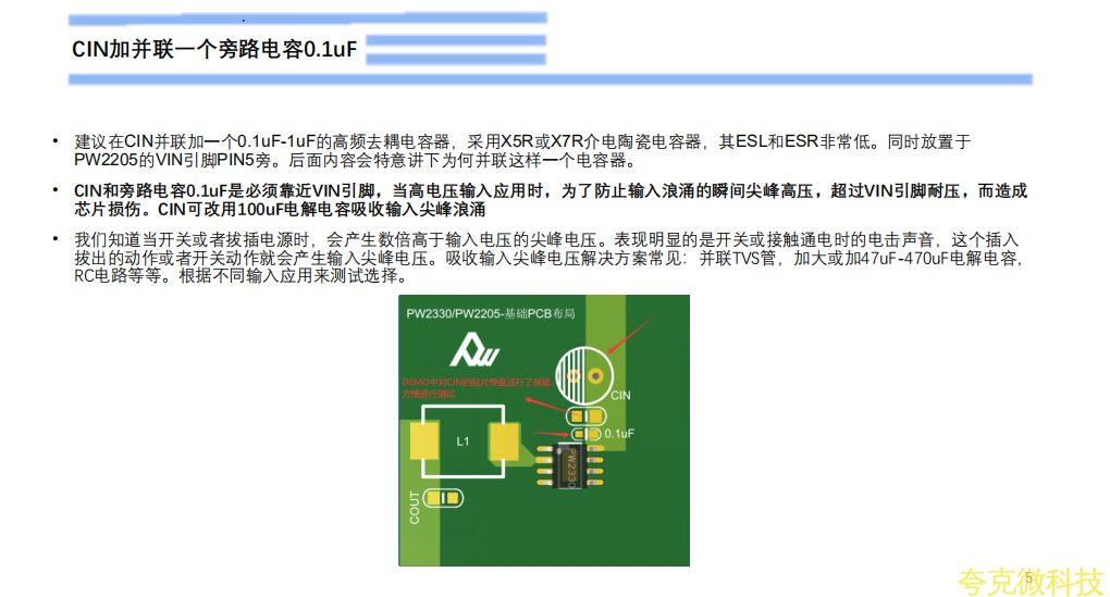 PW2205的VIN引腳PIN5旁。後麵內容會特意講下爲何併聯這樣一箇電容器。