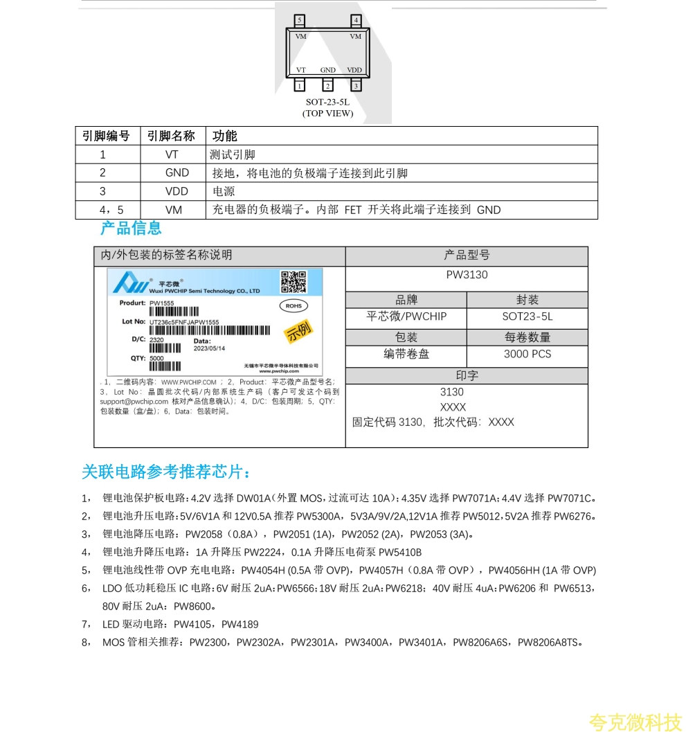 :平芯微PW3130中文規格書
