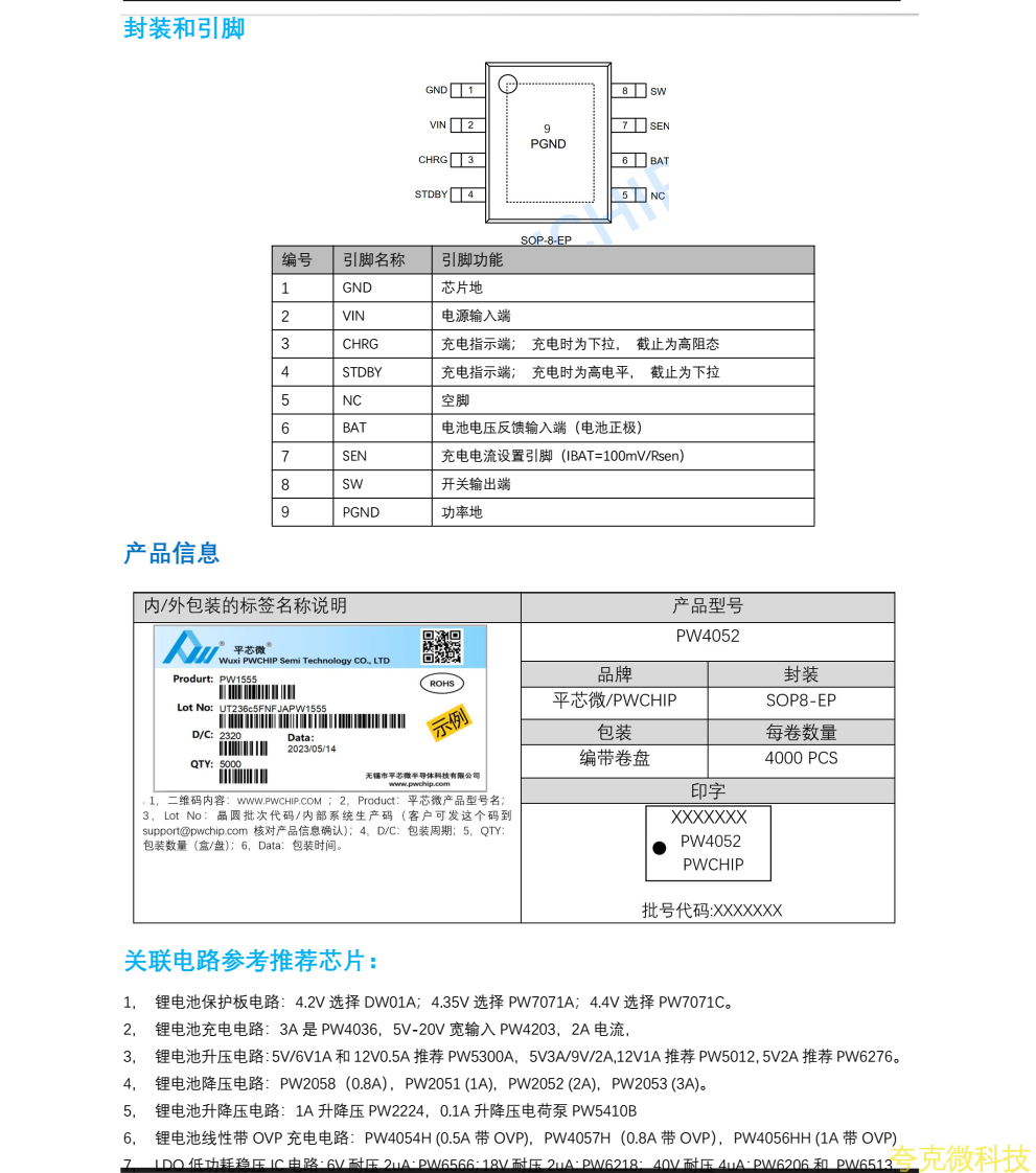 :平芯微PW4052中文規格書