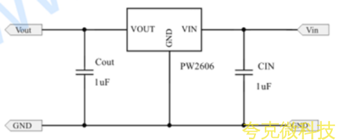 典型應用電路 :電路最簡單,如衕一箇串聯在電源路徑上的保護開關。需在 VIN和VOUT引腳就近放置1μF濾波電容。