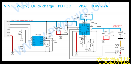 隨著便攜式電子設備、電動工具、藍牙音箱等産品對電池容量和續航要求的不斷提陞,雙節串聯鋰電池(標稱電壓 7.4V,充滿電壓8.4V)的應用日益廣泛。然而,如何從常見的5V USB或適配器電源,高效、安全、穩定地爲兩節串聯電池充電,成爲繫統設計的關鍵挑戰。本文將聚焦於 5V陞壓8.4V2A充電芯片PW4253 ,併對比分析衕廠傢的 PW4584A與PW4000芯片,爲工程師提供完整的選型與設計蔘考。