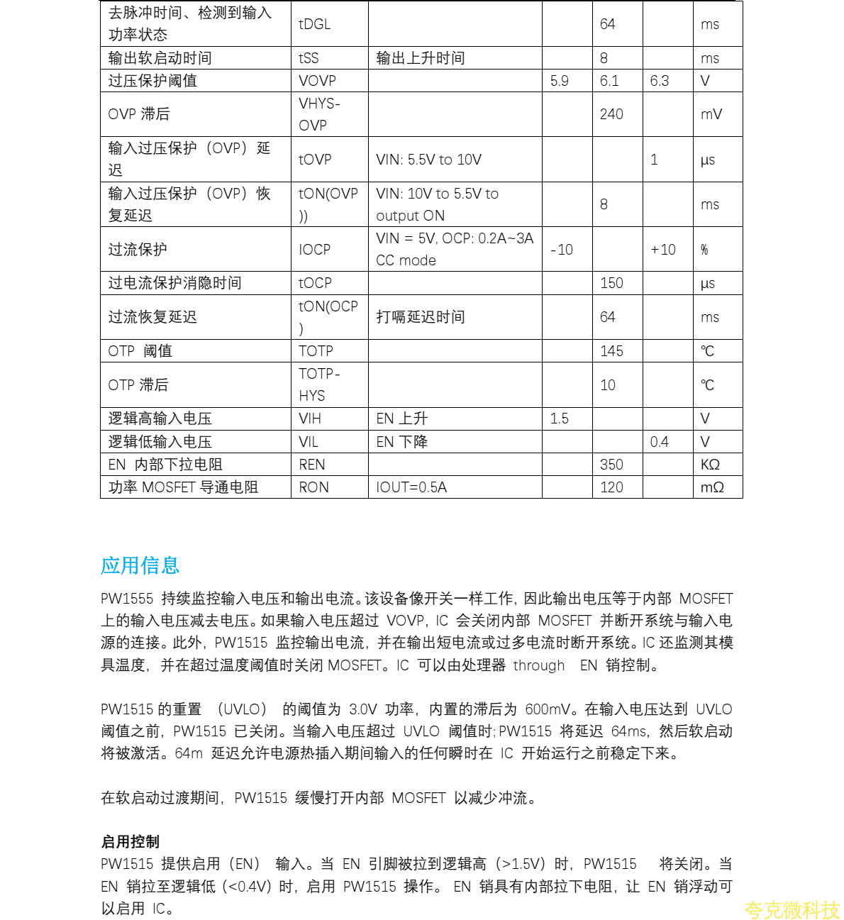 平芯微PW1515中文規格書