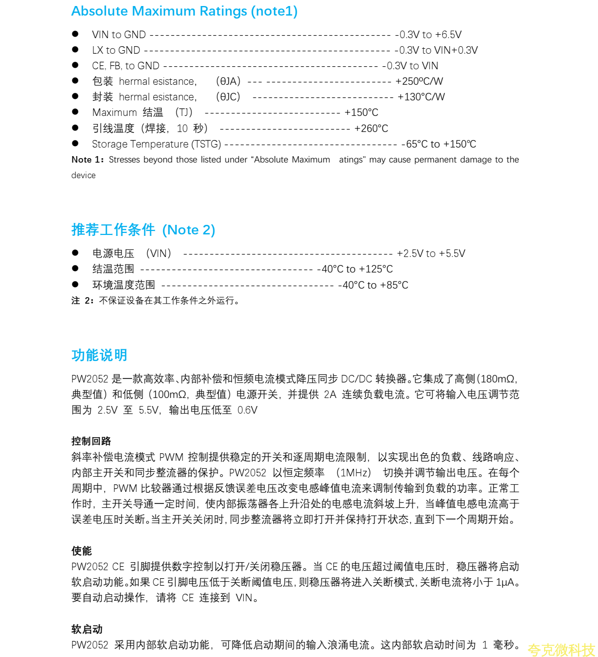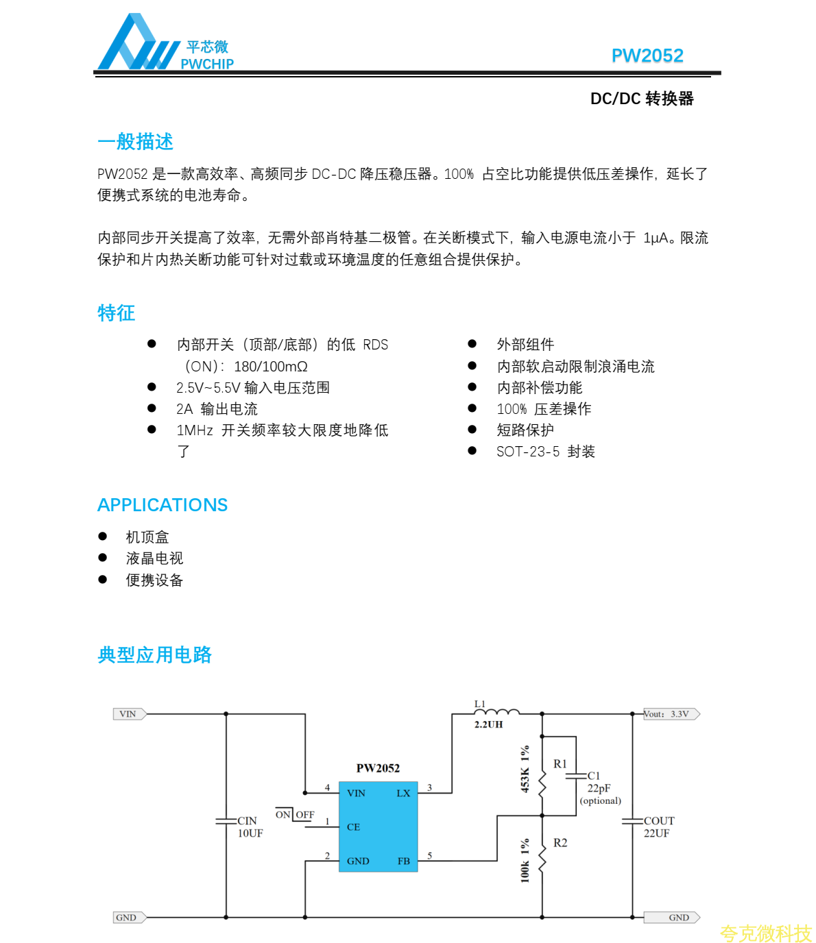 平芯微PW2052中文規格書