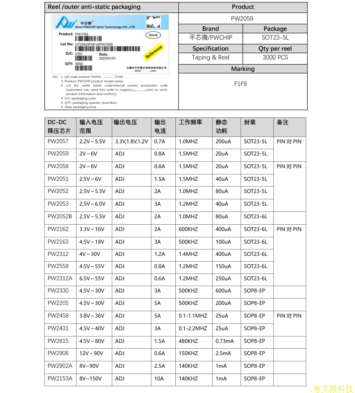 平芯微PW2058/PW2059中文規格書