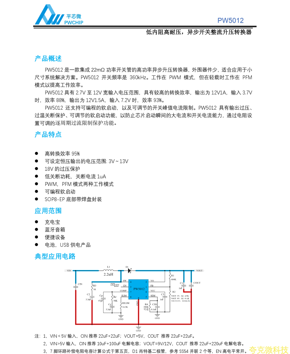 平芯微PW5012中文規格書