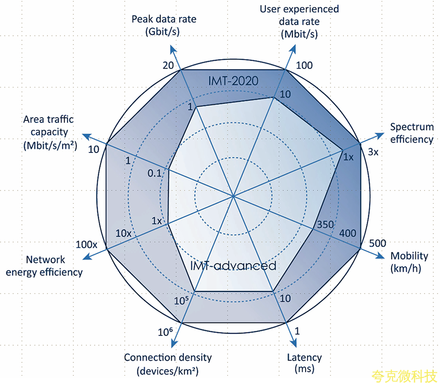 即使快速浏览5G规格,也会发现大量新规格,速度,带宽,等待时间,容量,密度,频谱效率,网络效率,可靠性,覆盖范围等提高了一个到两个数量级。
