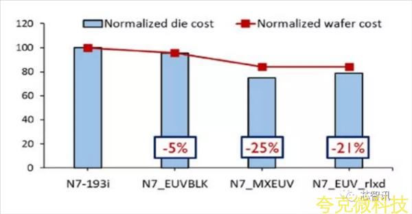 根据International Society for Optics and Photonics 以及 VLSI Research 研究发现,高精度 EUV 光刻机的使用将使die 和 wafer 的成本进一步减小,但是设备本身成本也会增长。