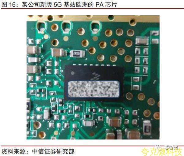 华为在最新的去A基站中采用了海思自行设计的芯片进行替代。华为从4G开始就规模采用自主设计的ADC/DAC,由台湾某晶圆厂进行代工,已达到仅落后ADI最新产品一代的水平,完全能满足5G产品高性能商用。