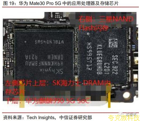 (1)应用处理器及基带采用麒麟系列自研芯片,由华为海思自行设计并由台积电代工制造,例如最新的麒麟9905G芯片由台积电7nm+EUV工艺制造,后续型号还将采用台积电5nm,由于中芯国际14nm已进入量产阶段,我们认为华为海思是中芯国际14nm当前的主要客户。