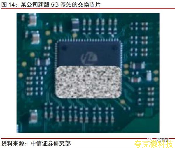 交换芯片通常存在于BBU内,用于板间的数据交换以及和SPN的数据交换,这一块的供应商主要是美国的博通和Marvell。华为的交换机、 路由器起家很早,路由交换芯片早有完整系列,早已经能实现自主。