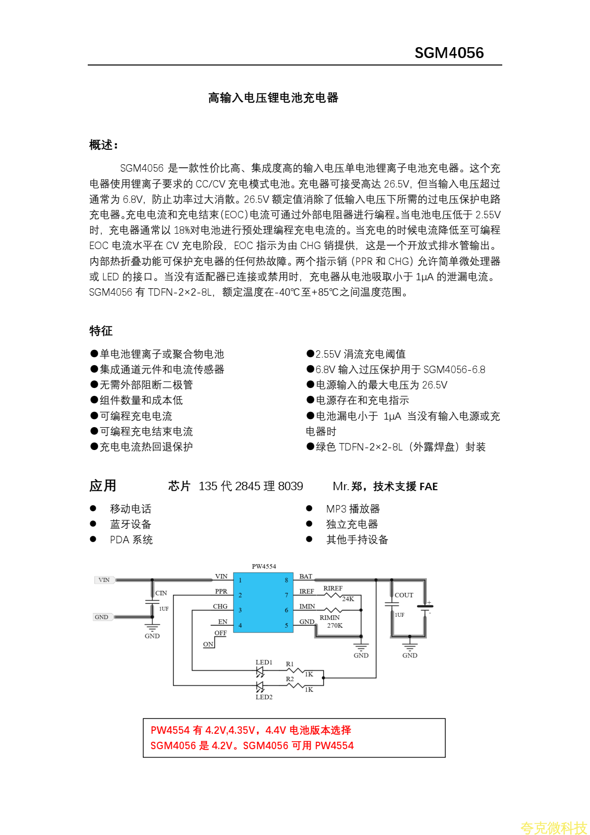SGM4056资料,中文版,4.35V和4.2V版本PW4554
