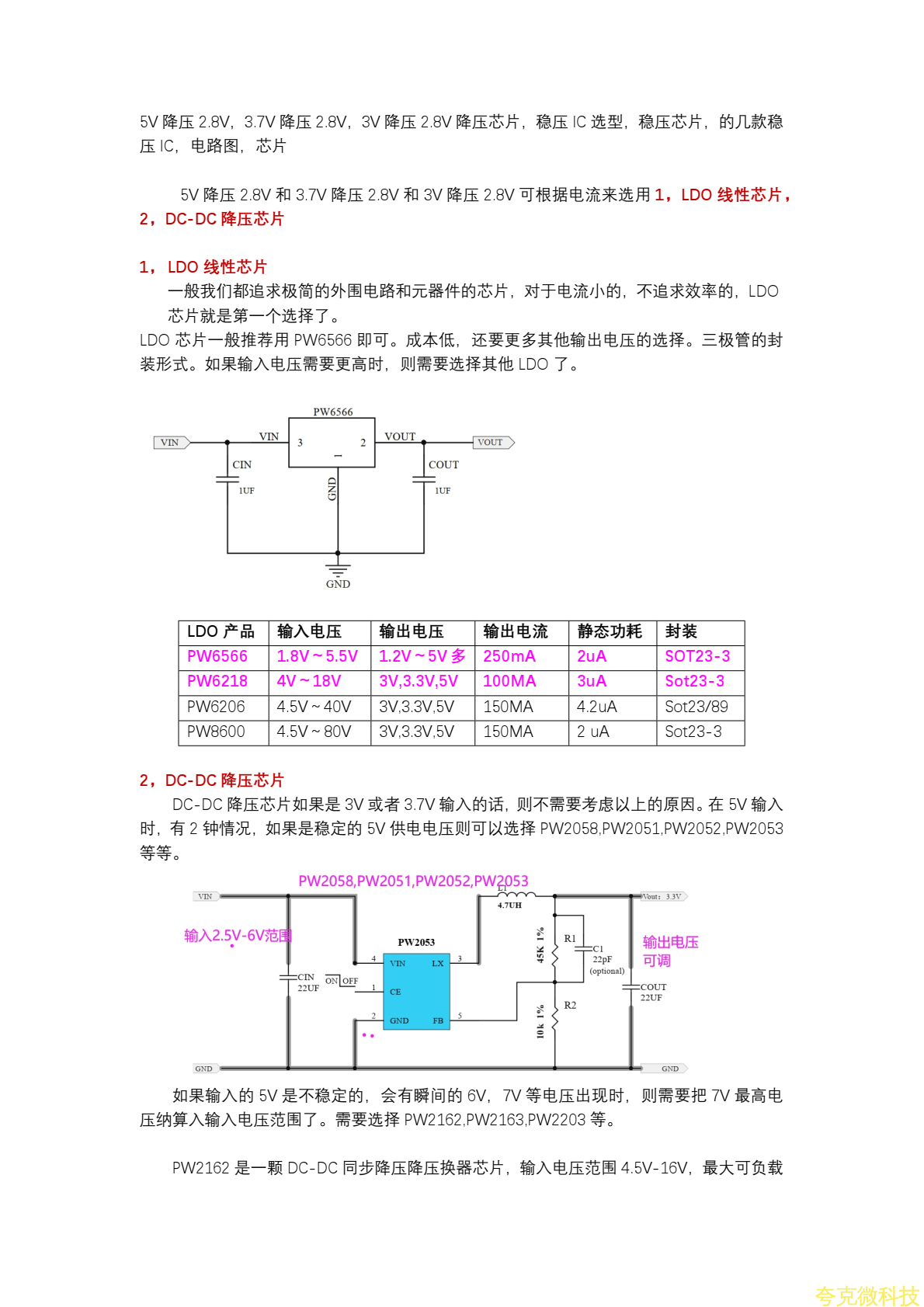 5V降压2.8V,3.7V降压2.8V,3V降压2.8V芯片选型