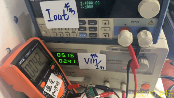 PW1555的输入电压是12.30V,输出电压为12.16V,负载3A时。再负载3A时,芯片的温度在44度。