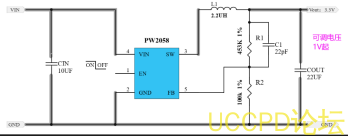 5, 还有 PW2057 固定输出电压,节省了 R1,R2,C1。
