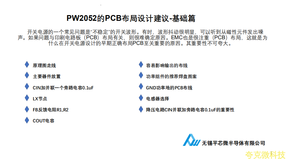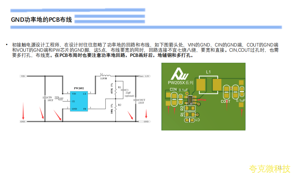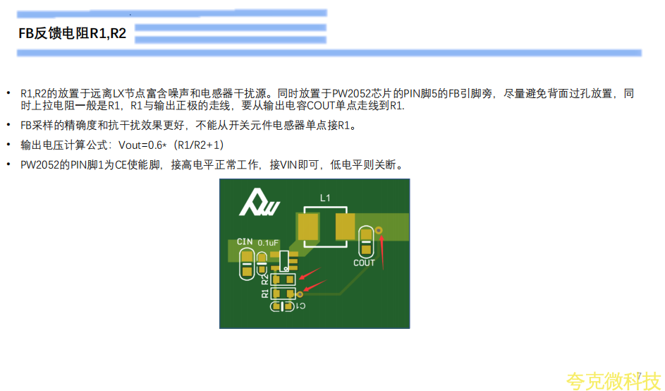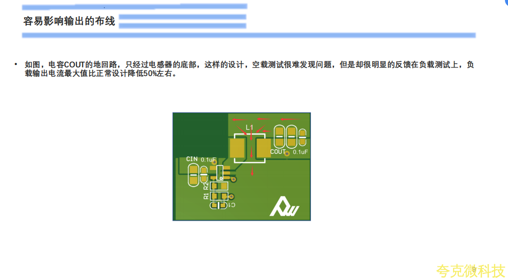 • COUT布线尽量跟电感器同一层,如使用通孔过孔,应使用多个通孔以最小化通孔阻抗。
