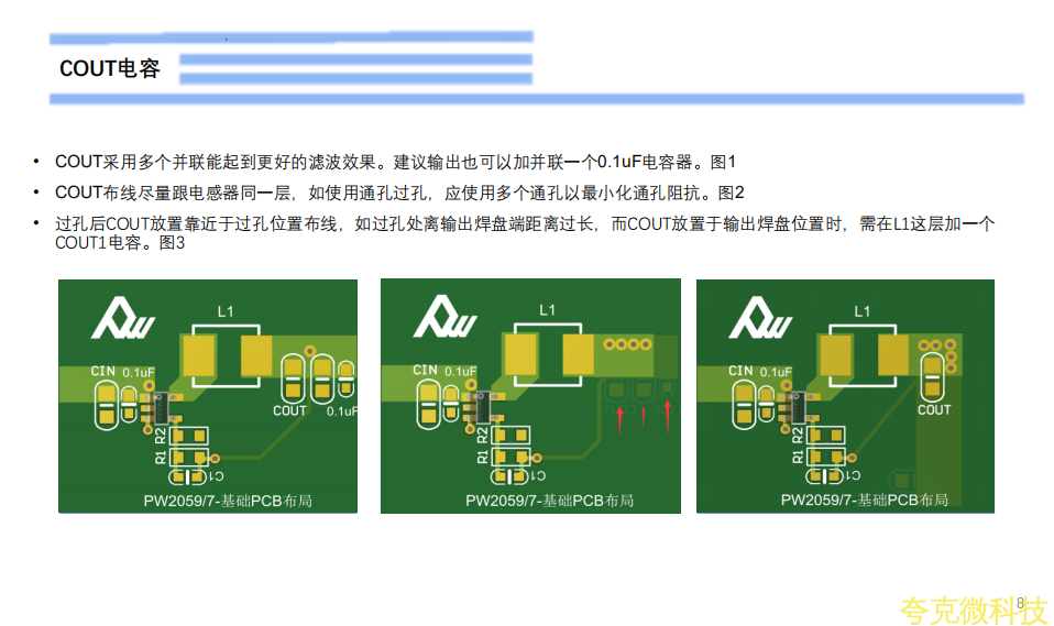 和VOUT的GND端和PW芯片的GND脚,这5点,布线要宽的同时,回路连接不宜七绕八绕,要宽和直接。CIN,COUT过孔时,也需