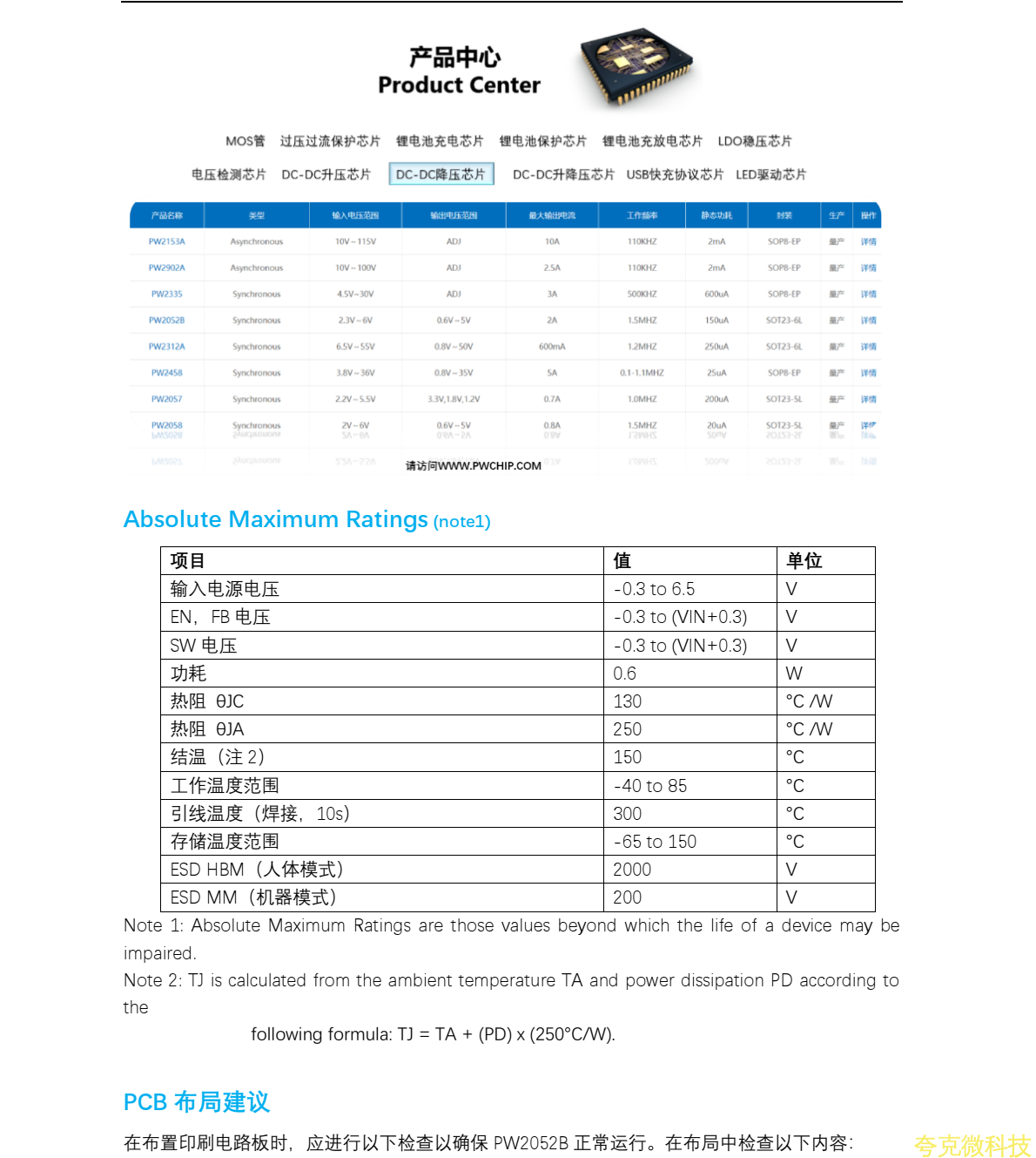 平芯微PW2052B中文规格书