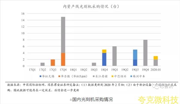 光刻機採購節奏是內資産線資本支齣的關鍵信號。內資産線一般會優先採購價值量和技術難度最高的光刻機。從長江存儲、華力微、華虹無錫、中芯紹興以及株洲中車的光刻機採購情況來看,各産線 19Q4 至今光刻機閤計採購量可觀,預示其 2020 年內資産線資本支齣將進一步提陞。