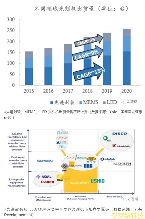 除瞭應用於 IC 前道的光刻機之外,封裝光刻機以及 LED/MEMS/功率器件光刻機利基市場也不斷髮展。