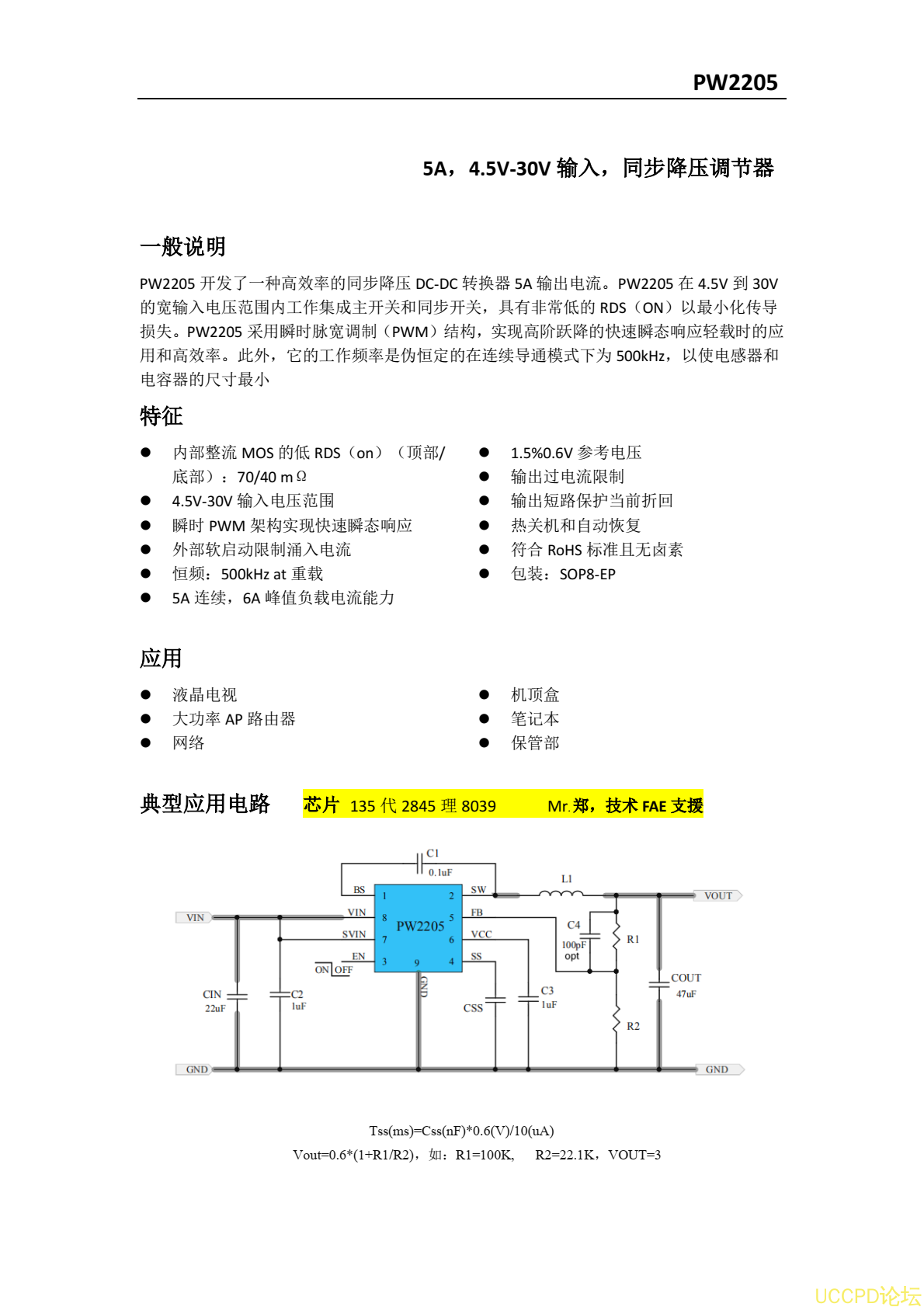 PW2205低功耗規格書,24V降壓5V,3.3V電流5安培