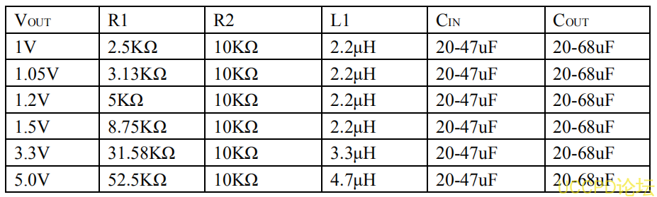 在 100mA 以下的輕載條件下,建議採用較大的電感改善效率。